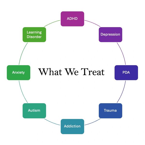 We offer a range of services for children, adolescents, and adults that includes treating anxiety, mood disorders, autism, addictions, and other neurodiverse clients.